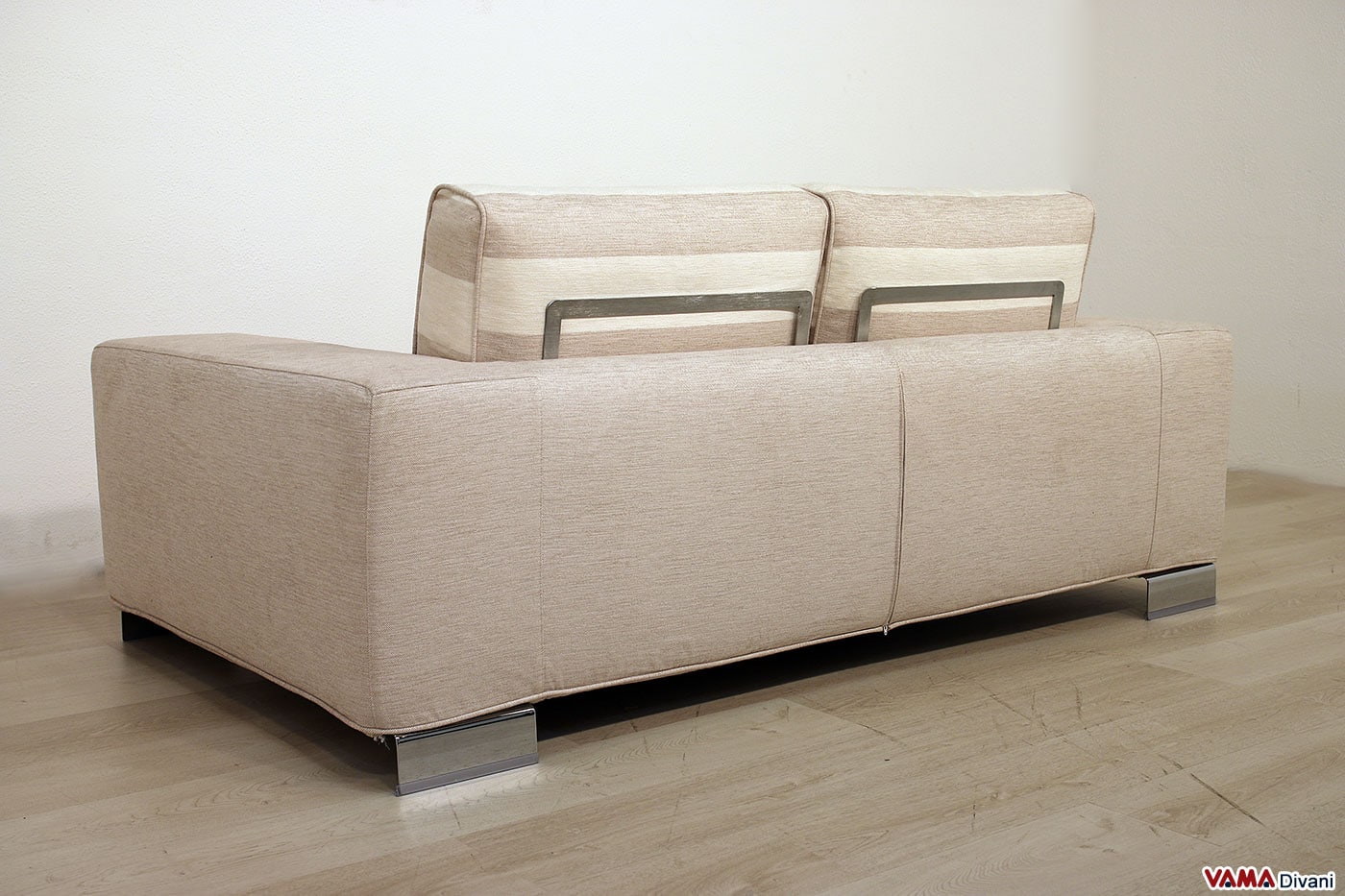 Un divano completamente sfoderabile realizzato in tessuto a righe nei cuscini e tinta unita per tutta la scocca. Un divano moderno con piedi alti in acciaio lucido in offerta per rinnovo showroom insieme al compagno 3 posti. Non lasciarti sfuggire questo salotto moderno di design ad un prezzo irripetibile.