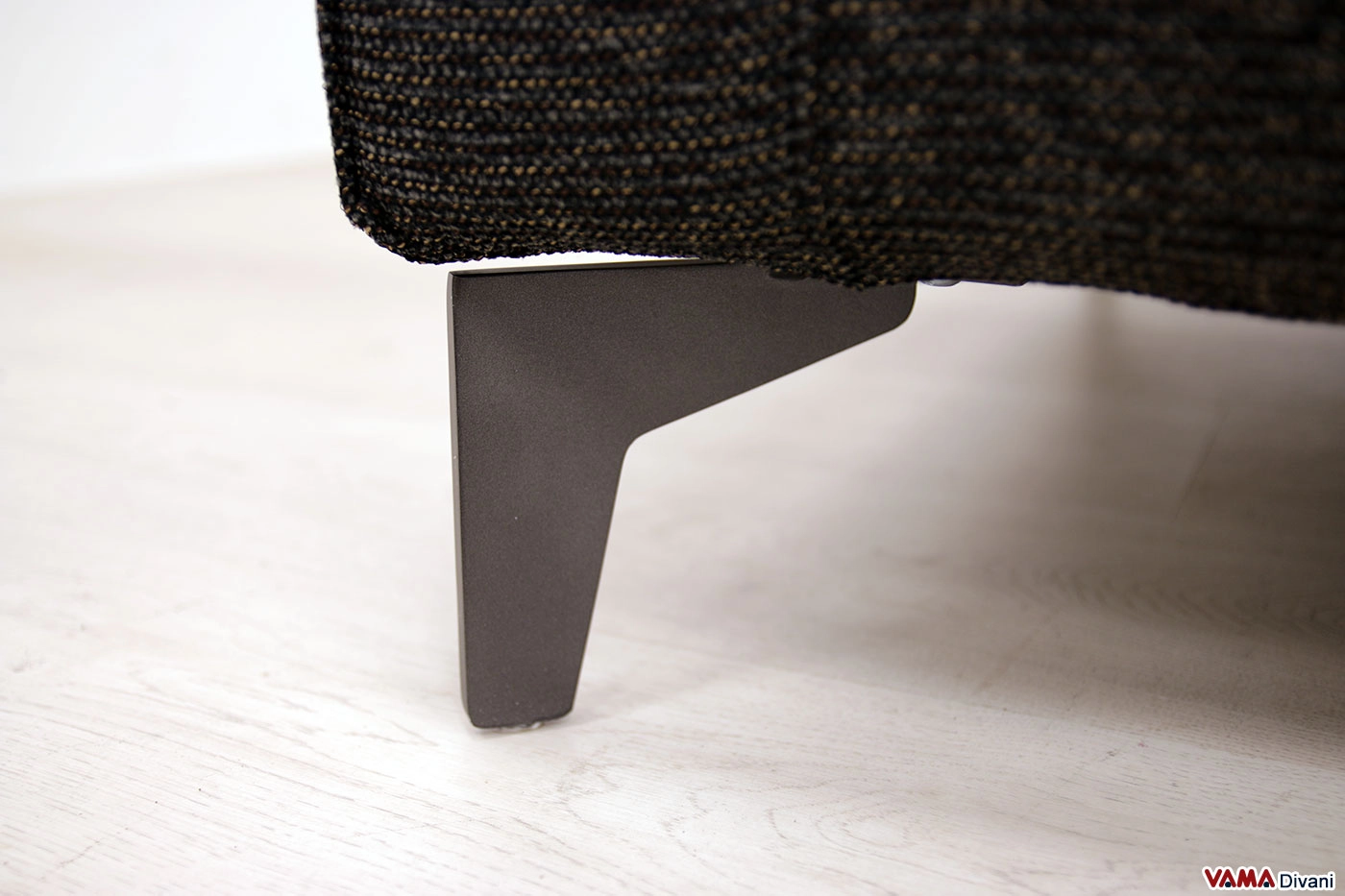 Un divano moderno dalle linee semplici e decise con particolari piedi alti in acciaio satinato nero.