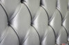 Un letto con testata rotonda impreziosito dalla lavorazione capitonnè al centro. La parte esterna è definita con una cornice imbottita che segue la forma della testiera.