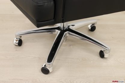 Una poltrona per ufficio dallo stile semplice e lineare con girevole in acciaio cromato con 5 assi per le ruote.